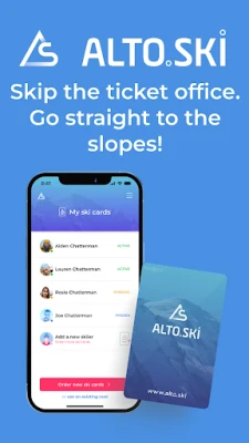 Alto.Ski revolutionerar din skidupplevelse. Ladda enkelt liftkort direkt på ditt skidkort från mobilen. I utvalda anläggningar kan du åka skidor först och betala endast för den faktiska tiden du tillbringar i backen, baserat på dina liftpassager.